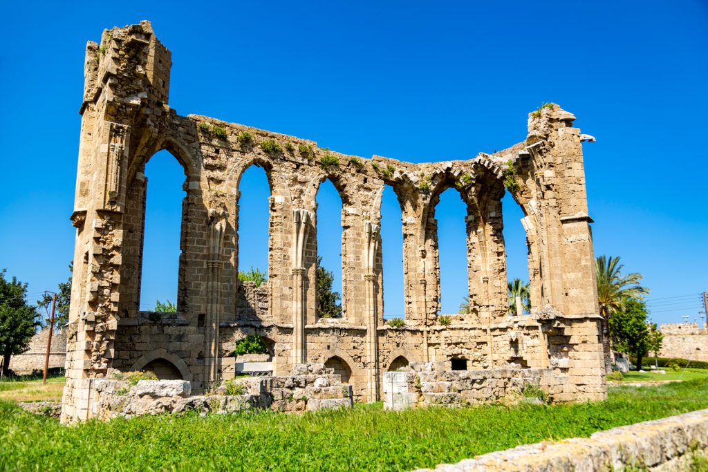 13. yy. sonlarında inşa edilmiş, Gotik üslubun güzel örneklerindendir. Salamis yıkıntılarından getirilen malzemelerin kullanıldığı, mimarisinde Paris’teki St. Chapelle kilisesinden esinlenildiği düşünülmektedir. Beş bölümlü bir nefi olup, bir koro yeri de bulunmaktadır. Günümüze kadar ulaşan bu koro yeri ve kuzey duvarıdır. Geniş ve uzun pencereleri bir zamanlar Gotik oymalarla süslüydü. Kilisenin şehrin surlarının yapımından önce inşa edildiği, sur özelliği taşıyan yapısından anlaşılmaktadır.